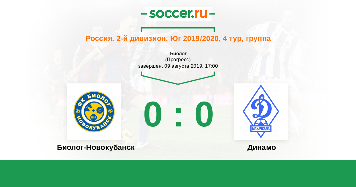 Россия. Вторая лига. Группа 1 03.10.2020 Биолог-Новокубанск Логотип футбольный клуб Биолог-Новокубанск 1:2 Логотип футбольный клуб Динамо (Махачкала) Динамо