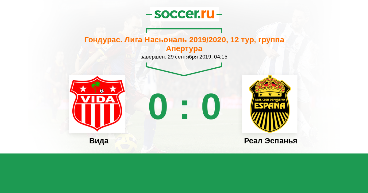 Гондурас. Лига Насьональ 09.04.2015 Вида Логотип футбольный клуб Вида (Ла-Сейба) 2:2 Логотип футбольный клуб Реал Эспанья (Сан-Педро-Сула) Реал Эспанья