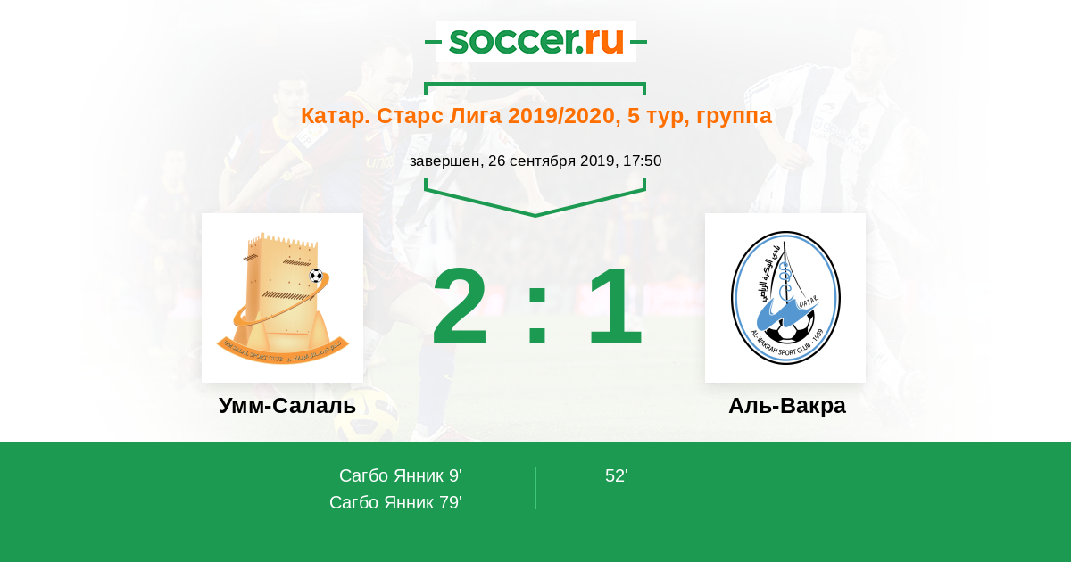 Катар. Старс Лига 20.09.2010 Умм-Салаль Логотип футбольный клуб Умм-Салаль 2:1 Логотип футбольный клуб Аль-Вакра Аль-Вакра