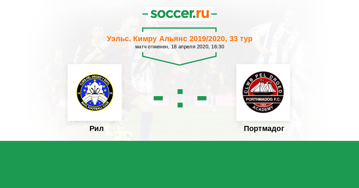 Уэльс. Премьер-Лига 17.01.2009 Рил Логотип футбольный клуб Рил 2:0 Логотип футбольный клуб Портмадог Портмадог