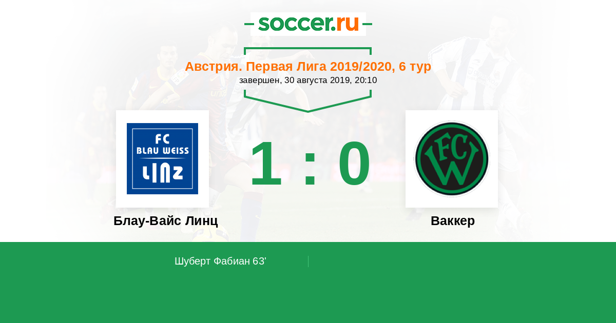 Австрия. Первая Лига 12.09.2017 Ваккер Логотип футбольный клуб Ваккер (Инсбрук) 3:0 Логотип футбольный клуб Блау-Вайс Линц Блау-Вайс Линц
