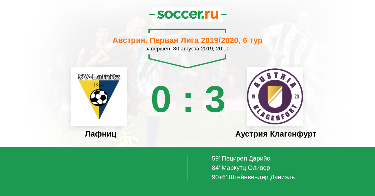 Австрия. Первая Лига 26.10.2018 Лафниц Логотип футбольный клуб Лафниц 1:1 Логотип футбольный клуб Аустрия Клагенфурт Аустрия Клагенфурт