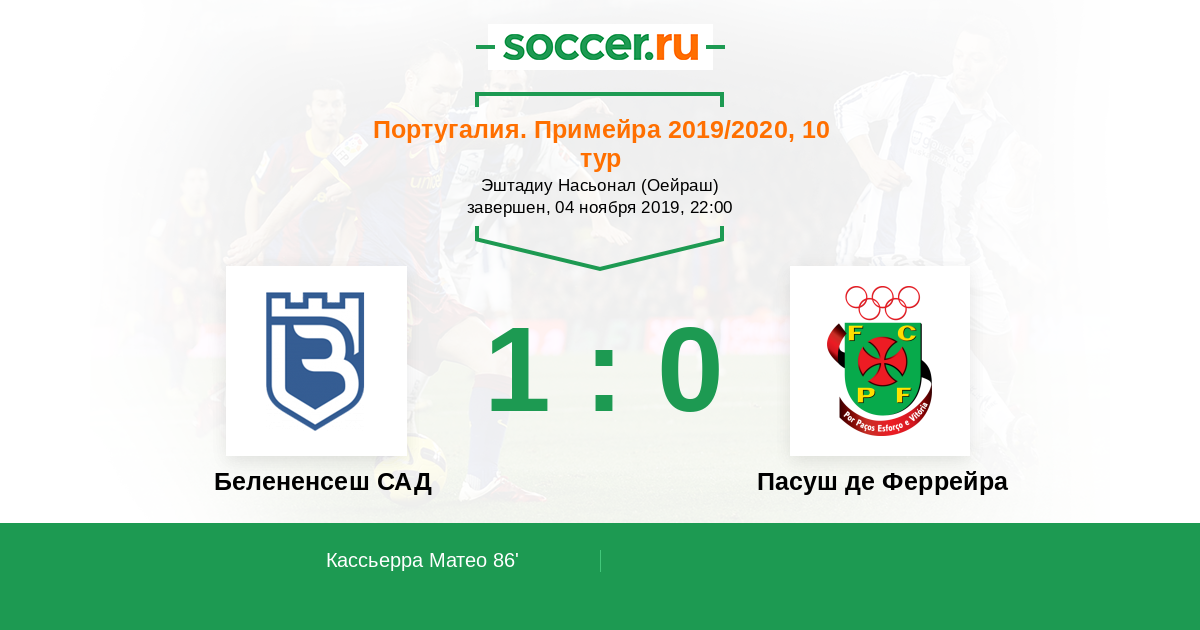 Португалия. Примейра 10.12.2017 Белененсеш САД Логотип футбольный клуб Белененсеш САД (Лиссабон) 1:1 Логотип футбольный клуб Пасуш де Феррейра Пасуш де Феррейра