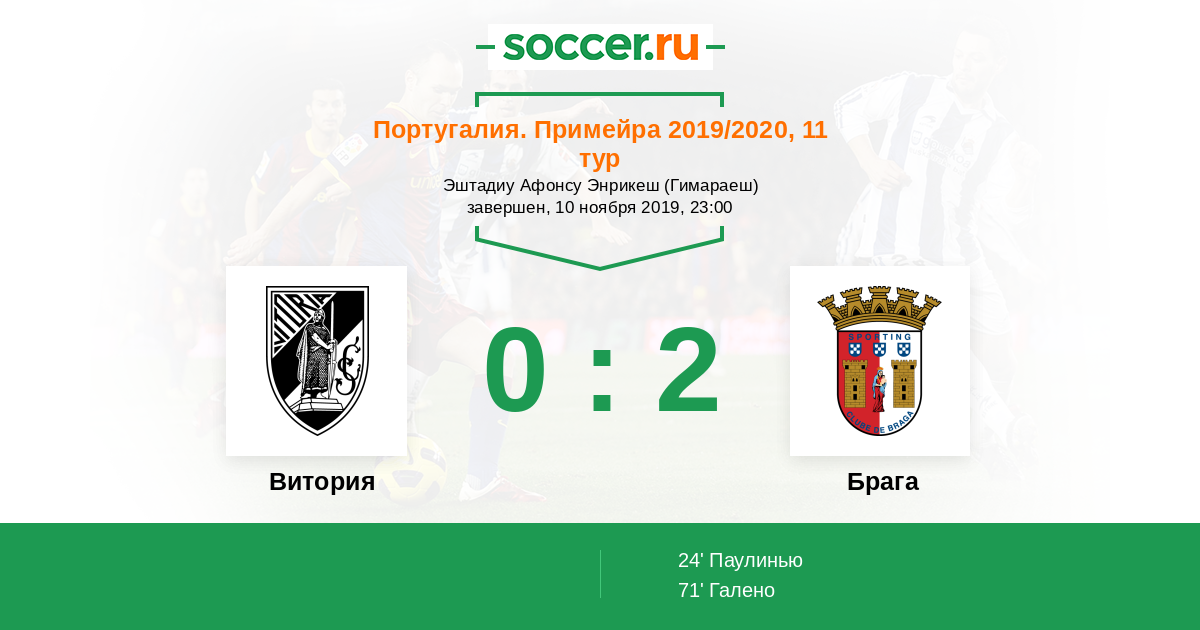 Португалия. Примейра 25.10.2020 Витория Логотип футбольный клуб Витория (Гимараеш) 0:1 Логотип футбольный клуб Брага Брага