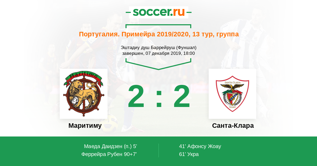 Португалия. Примейра 20.09.2020 Санта-Клара Логотип футбольный клуб Санта-Клара (Понта-Делгада) 2:0 Логотип футбольный клуб Маритиму (Фуншал) Маритиму