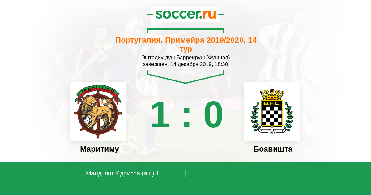 Португалия. Примейра 30.11.2014 Маритиму Логотип футбольный клуб Маритиму (Фуншал) 4:0 Логотип футбольный клуб Боавишта (Порту) Боавишта