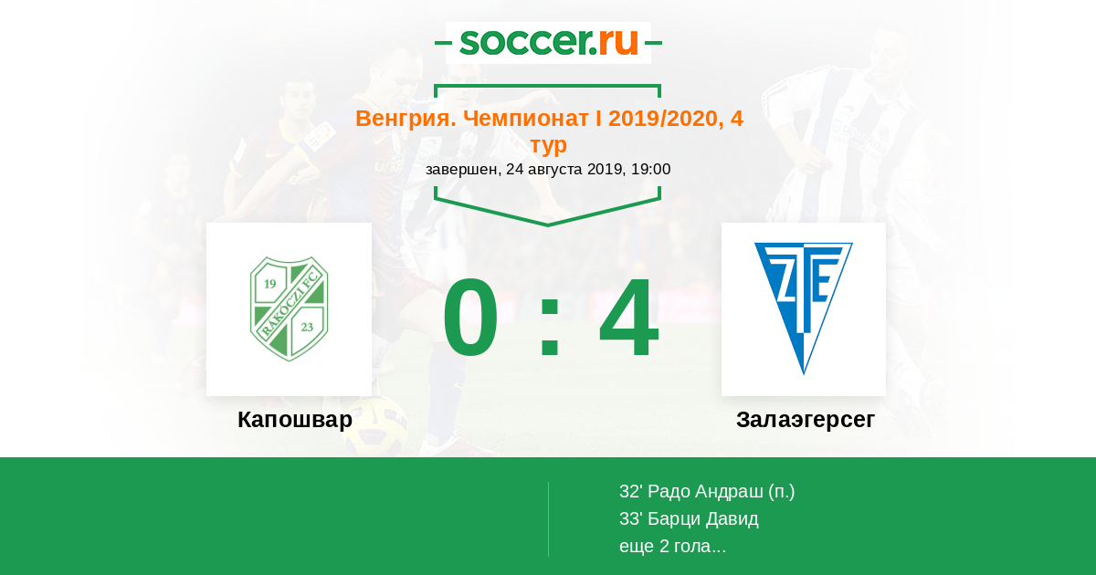 Венгрия. Чемпионат II 29.08.2018 Залаэгерсег Логотип футбольный клуб Залаэгерсег 1:2 Логотип футбольный клуб Капошвар Капошвар