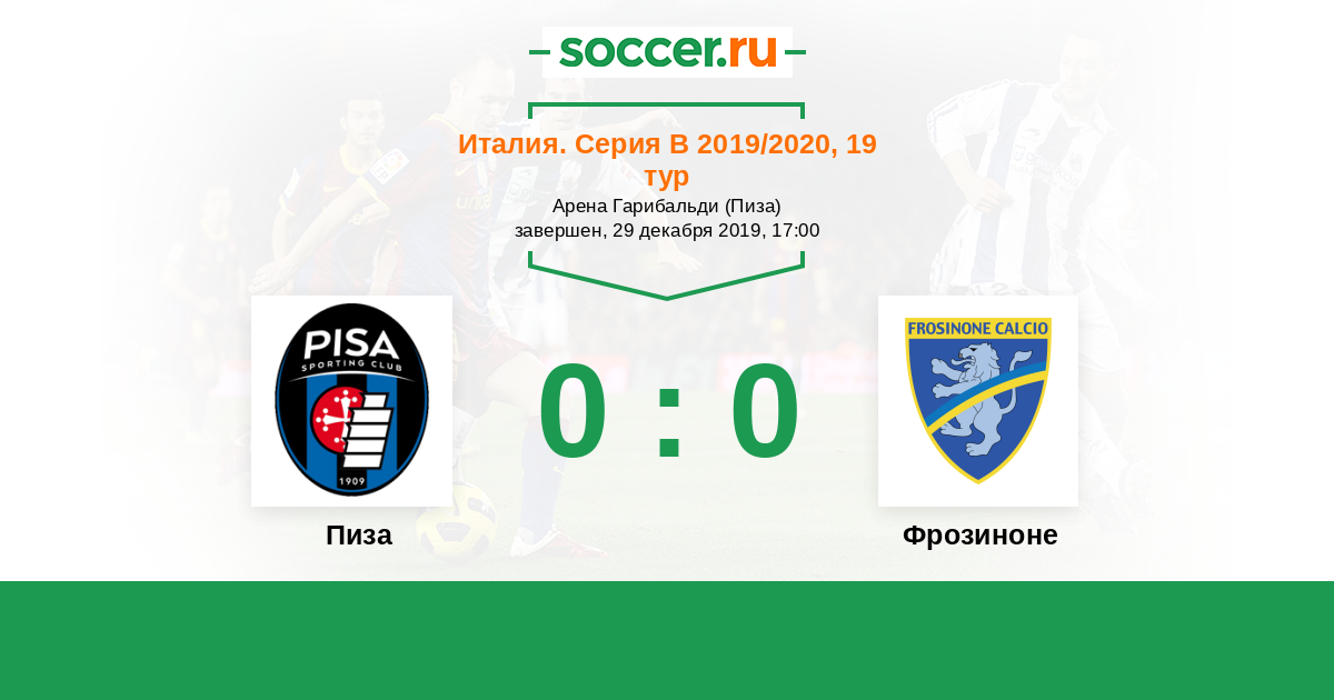 Италия. Серия В 19.02.2017 Пиза Логотип футбольный клуб Пиза 0:0 Логотип футбольный клуб Фрозиноне Фрозиноне