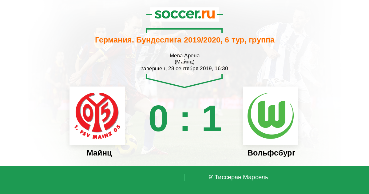 Германия. Бундеслига 26.09.2018 Майнц Логотип футбольный клуб Майнц 0:0 Логотип футбольный клуб Вольфсбург Вольфсбург