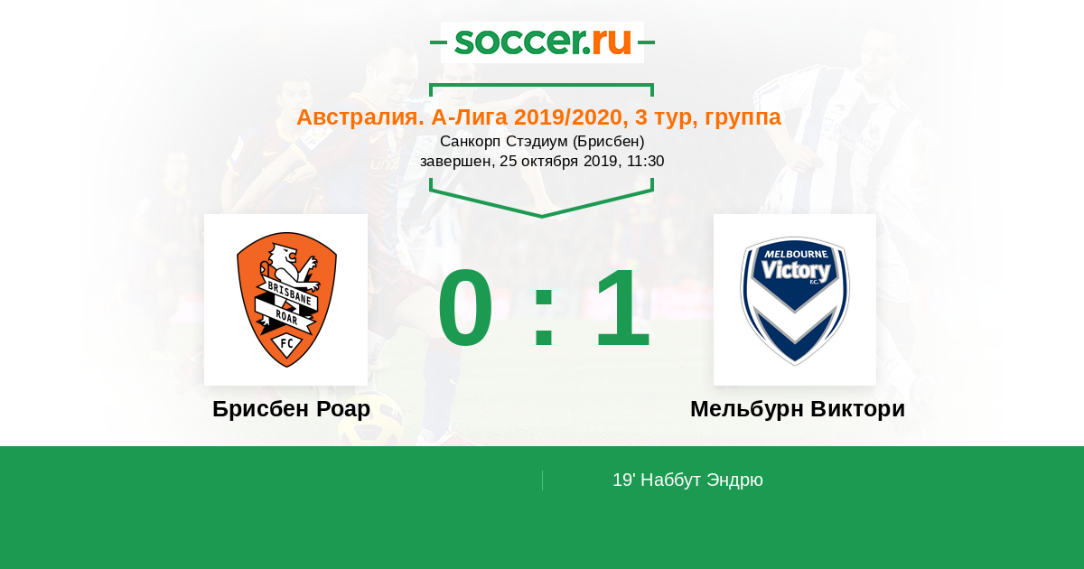Австралия. А-Лига 21.11.2009 Брисбен Роар Логотип футбольный клуб Брисбен Роар 0:1 Логотип футбольный клуб Мельбурн Виктори Мельбурн Виктори
