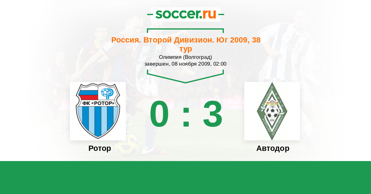 Россия. Вторая лига. Группа 1 05.04.2009 Автодор Логотип футбольный клуб Автодор (Владикавказ) 1:1 Логотип футбольный клуб Ротор (Волгоград) Ротор