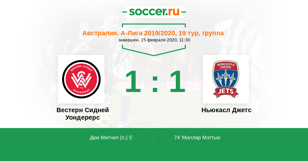 Австралия. А-Лига 14.02.2015 Ньюкасл Джетс Логотип футбольный клуб Ньюкасл Джетс 1:1 Логотип футбольный клуб Вестерн Сидней Уондерерс Вестерн Сидней Уондерерс