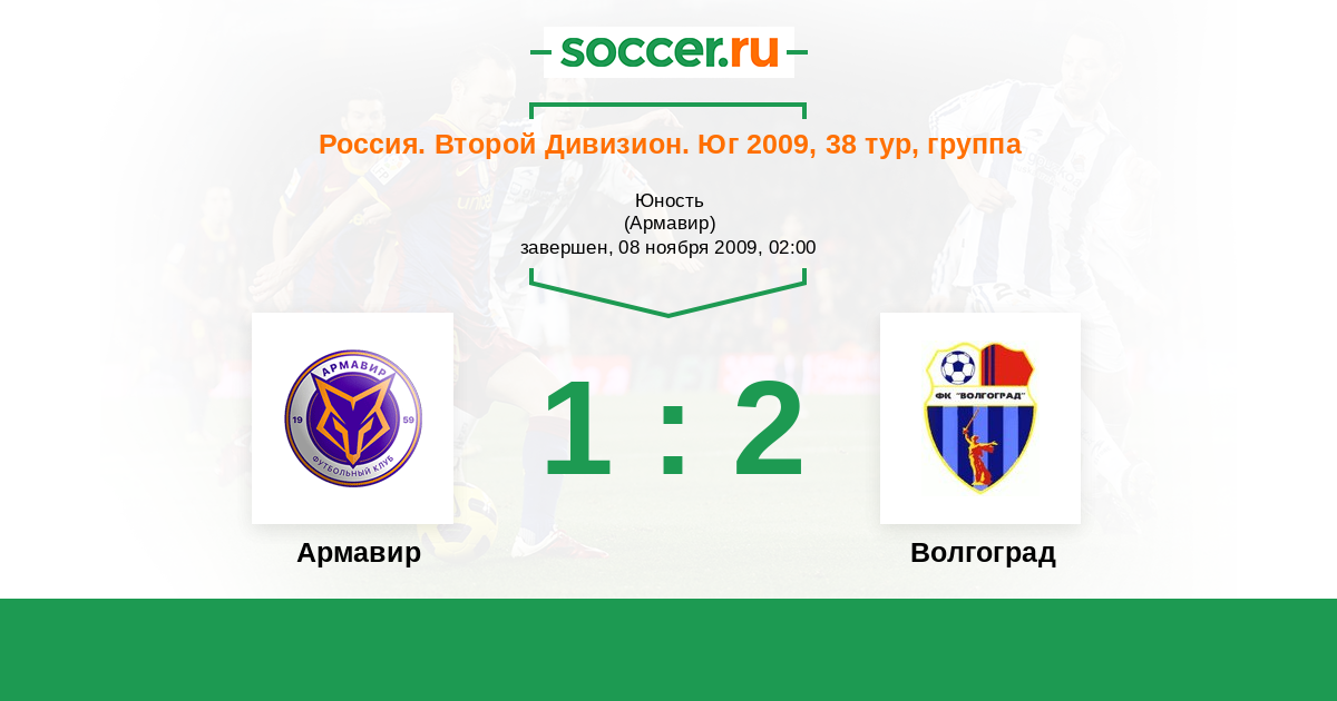 Россия. Вторая лига. Группа 1 08.11.2009 Торпедо Армавир   1:2 Логотип футбольный клуб Волгоград Волгоград