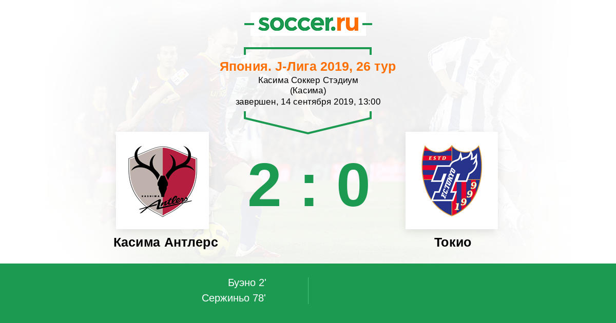 Япония. J-Лига 1 30.08.2014 Касима Антлерс Логотип футбольный клуб Касима Антлерс 2:2 Логотип футбольный клуб Токио Токио
