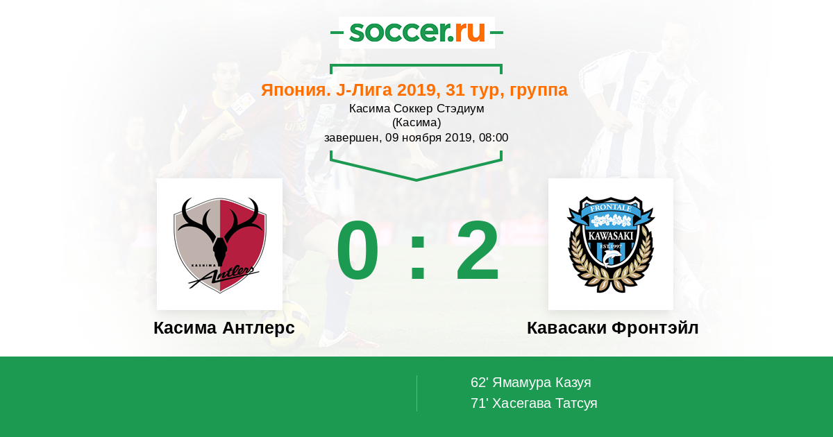Япония. J-Лига 1 14.11.2020 Касима Антлерс Логотип футбольный клуб Касима Антлерс 1:1 Логотип футбольный клуб Кавасаки Фронтэйл Кавасаки Фронтэйл