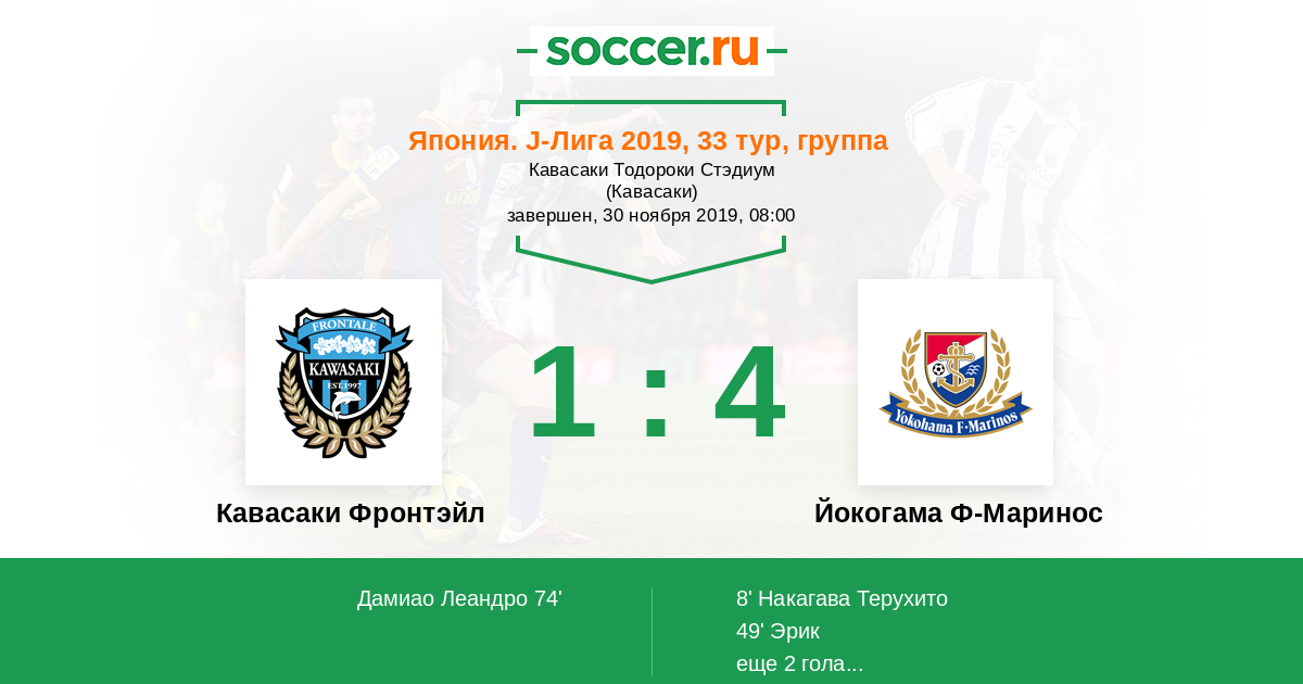 Япония. J-Лига 1 18.05.2014 Кавасаки Фронтэйл Логотип футбольный клуб Кавасаки Фронтэйл 0:3 Логотип футбольный клуб Йокогама Ф-Маринос Йокогама Ф-Маринос