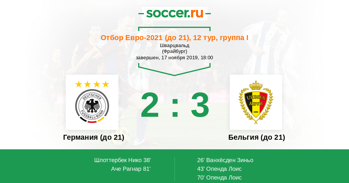 Бельгия (до 21) 4:1 4:1 0:0