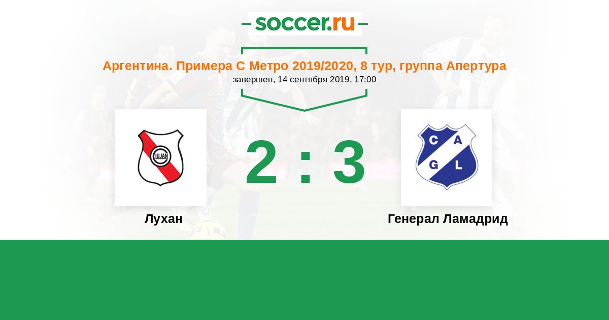 Аргентина. Примера С Метро 20.09.2014 Генерал Ламадрид Логотип Генерал Ламадрид (Буэнос-Айрес) 1:0 Логотип футбольный клуб Лухан Лухан