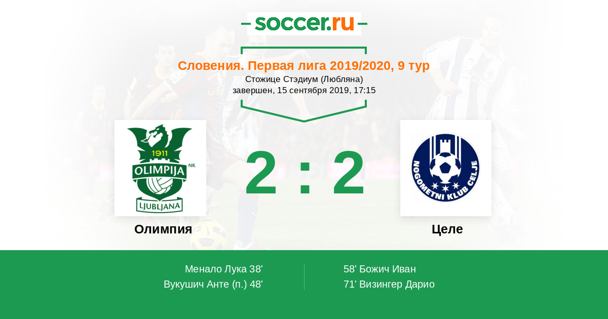 Словения. Первая Лига 02.11.2014 Олимпия Логотип футбольный клуб Олимпия (Любляна) 1:3 Логотип футбольный клуб Целе Целе