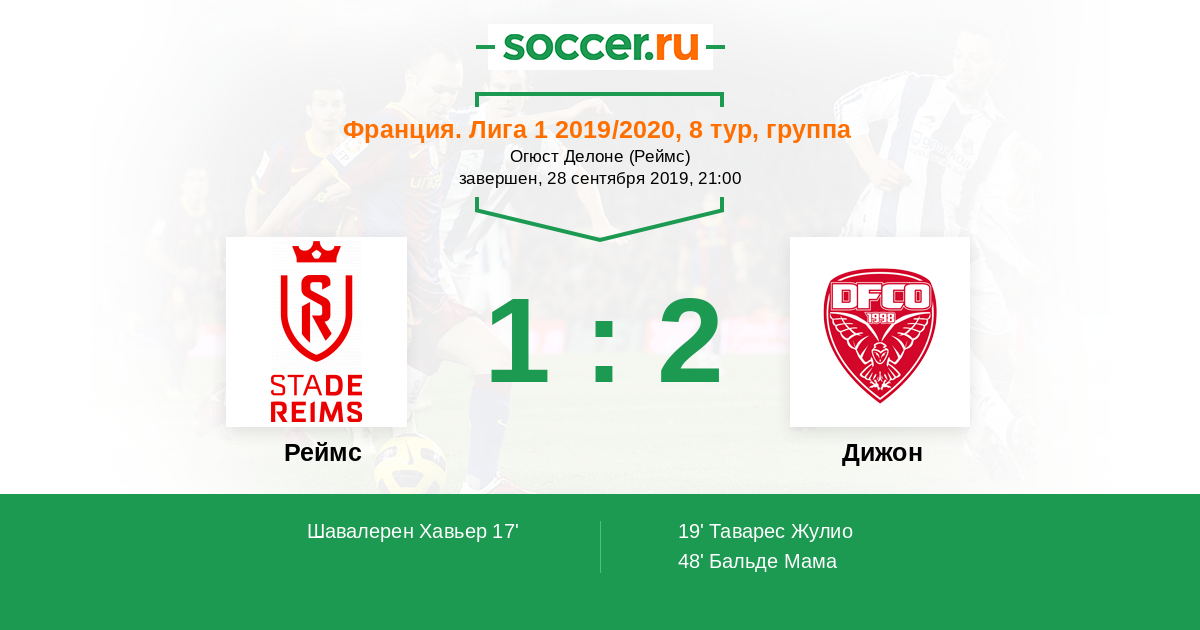 Франция. Лига 1 22.09.2018 Реймс Логотип футбольный клуб Реймс 0:0 Логотип футбольный клуб Дижон Дижон