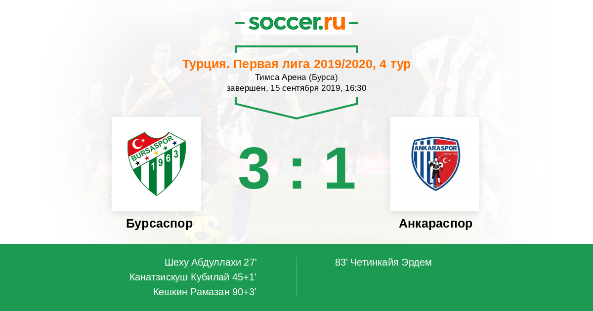 Турция. Первая лига 14.03.2021 Бурсаспор Логотип футбольный клуб Бурсаспор 3:1 Логотип футбольный клуб Анкараспор Анкараспор
