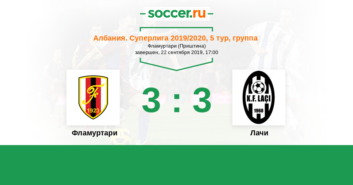 Албания. Суперлига 16.10.2017 Лачи Логотип футбольный клуб Лачи 1:1 Логотип футбольный клуб Фламуртари (Влера) Фламуртари