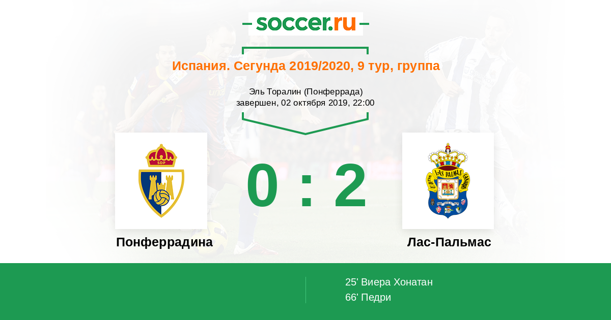Испания. Сегунда 25.09.2021 Лас-Пальмас Логотип футбольный клуб Лас-Пальмас 2:1 Логотип футбольный клуб Понферрадина Понферрадина