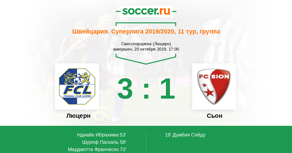 Швейцария. Суперлига 30.09.2018 Люцерн Логотип футбольный клуб Люцерн 1:3 Логотип футбольный клуб Сьон Сьон