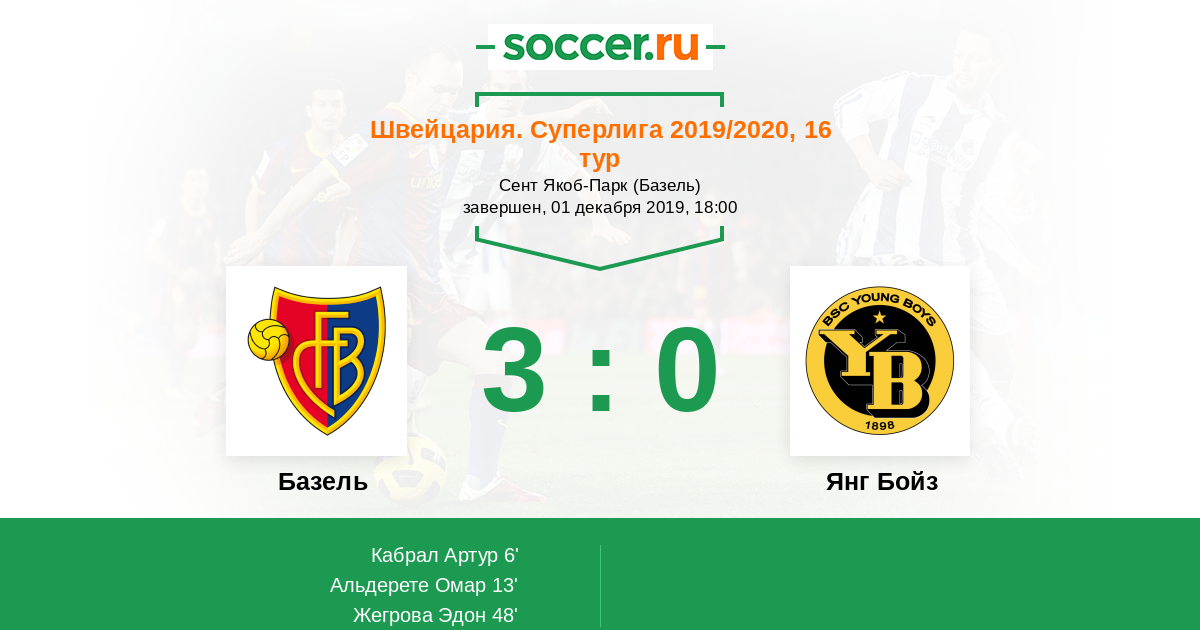 Швейцария. Суперлига 16.12.2020 Базель Логотип футбольный клуб Базель 0:2 Логотип футбольный клуб Янг Бойз (Берн) Янг Бойз