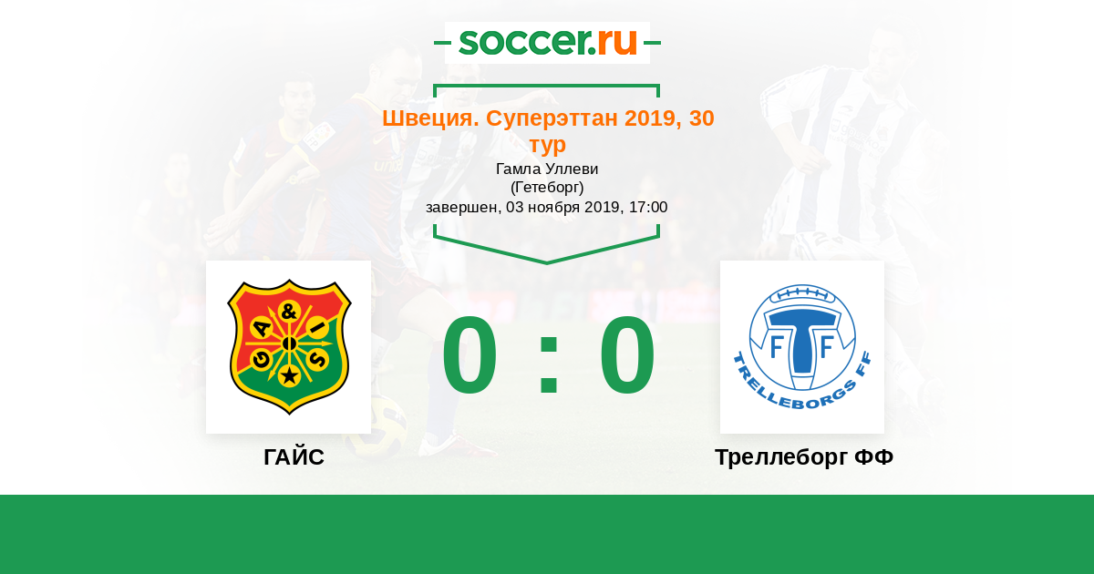 Швеция. Суперэттан 11.09.2017 Треллеборг ФФ Логотип футбольный клуб Треллеборг ФФ 2:0 Логотип футбольный клуб ГАЙС (Гетеборг) ГАЙС