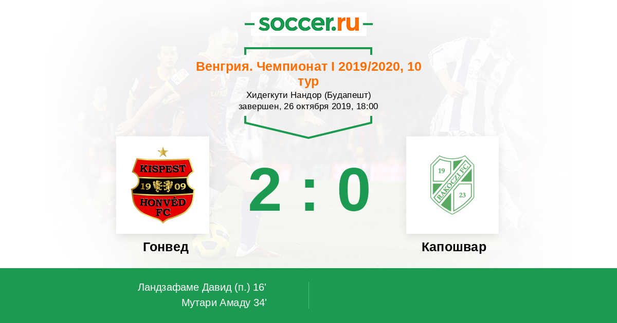 Венгрия. Чемпионат 1 24.06.2020 Гонвед Логотип футбольный клуб Гонвед (Будапешт) 4:2 Логотип футбольный клуб Капошвар Капошвар