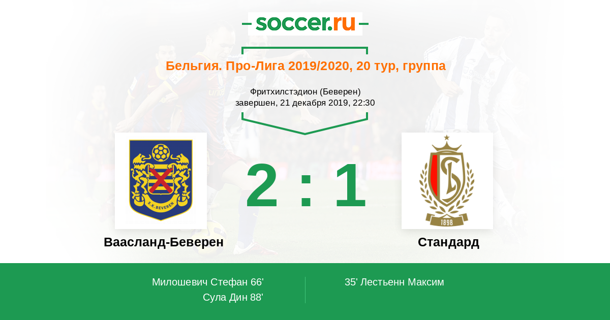 Бельгия. Про-Лига 30.10.2019 Стандард Логотип футбольный клуб Стандард (Льеж) 2:0 Логотип футбольный клуб Ваасланд-Беверен Ваасланд-Беверен