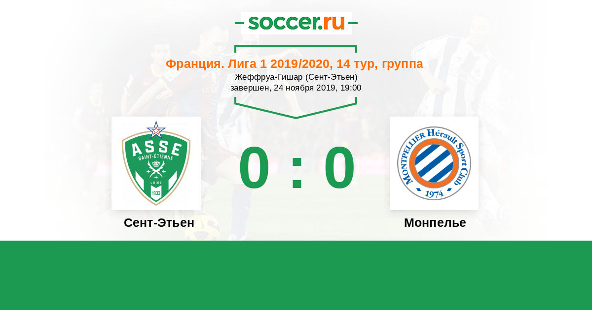 Франция. Лига 1 01.11.2020 Сент-Этьен Логотип футбольный клуб Сент-Этьен 0:1 Логотип футбольный клуб Монпелье Монпелье