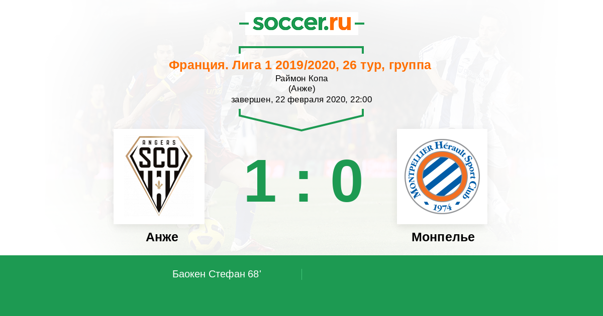 Франция. Лига 1 10.11.2018 Анже Логотип футбольный клуб Анже 1:0 Логотип футбольный клуб Монпелье Монпелье