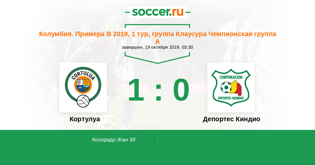 Колумбия. Примера B 17.10.2020 Депортес Киндио Логотип футбольный клуб Депортес Киндио (Армения) 1:2 Логотип футбольный клуб Кортулуа Кортулуа