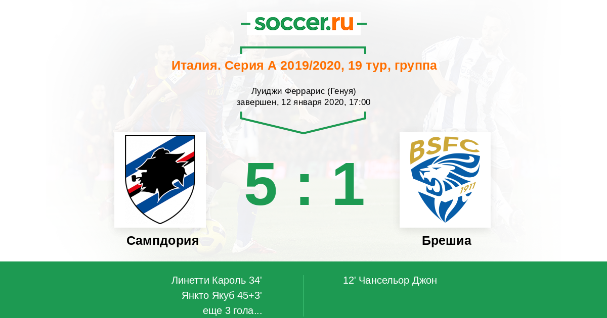 Сампдория 23:19 14:9 9:10