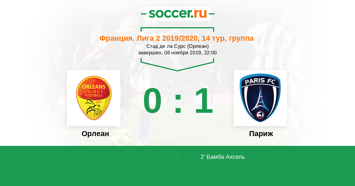 Франция. Насьональ (3-й дивизион) 19.10.2012 Орлеан Логотип футбольный клуб Орлеан 1:2 Логотип футбольный клуб Париж Париж