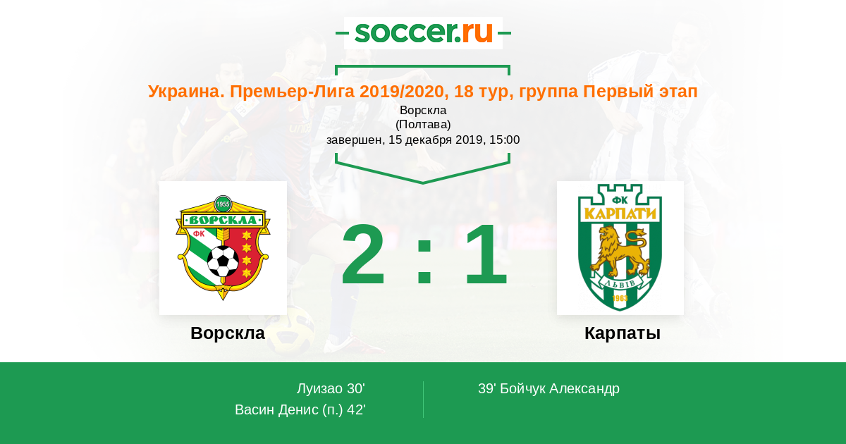 Украина. Премьер-Лига 14.09.2019 Карпаты Логотип футбольный клуб Карпаты (Львов) 2:1 Логотип футбольный клуб Ворскла (Полтава) Ворскла