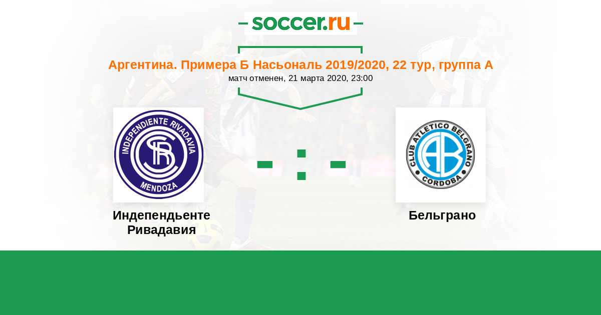 Аргентина. Примера Б Насьональ 29.09.2019 Бельграно Логотип футбольный клуб Бельграно (Кордоба) 2:2 Логотип футбольный клуб Индепендьенте Ривадавия (Мендоса) Индепендьенте Ривадавия