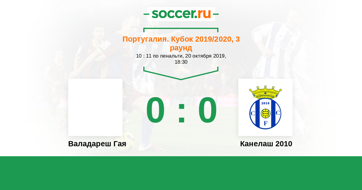 Португалия. Кубок 08.09.2019 Канелаш 2010 Логотип футбольный клуб Канелаш 2010 3:1 Логотип Валадареш Гая (Вила-Нова-ди-Гая) Валадареш Гая