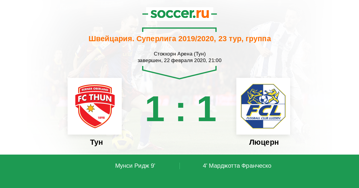 Швейцария. Суперлига 11.04.2015 Тун Логотип футбольный клуб Тун 1:0 Логотип футбольный клуб Люцерн Люцерн