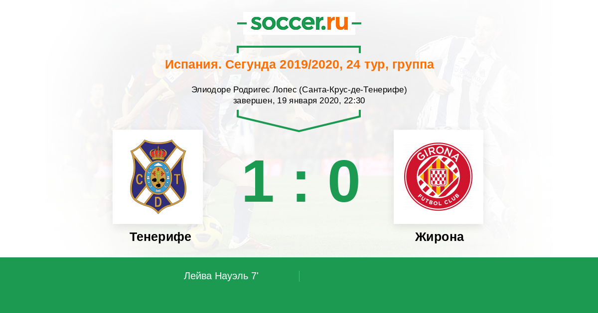 Испания. Сегунда 21.12.2020 Тенерифе Логотип футбольный клуб Тенерифе (Санта-Крус-де-Тенерифе) 2:0 Логотип футбольный клуб Жирона Жирона