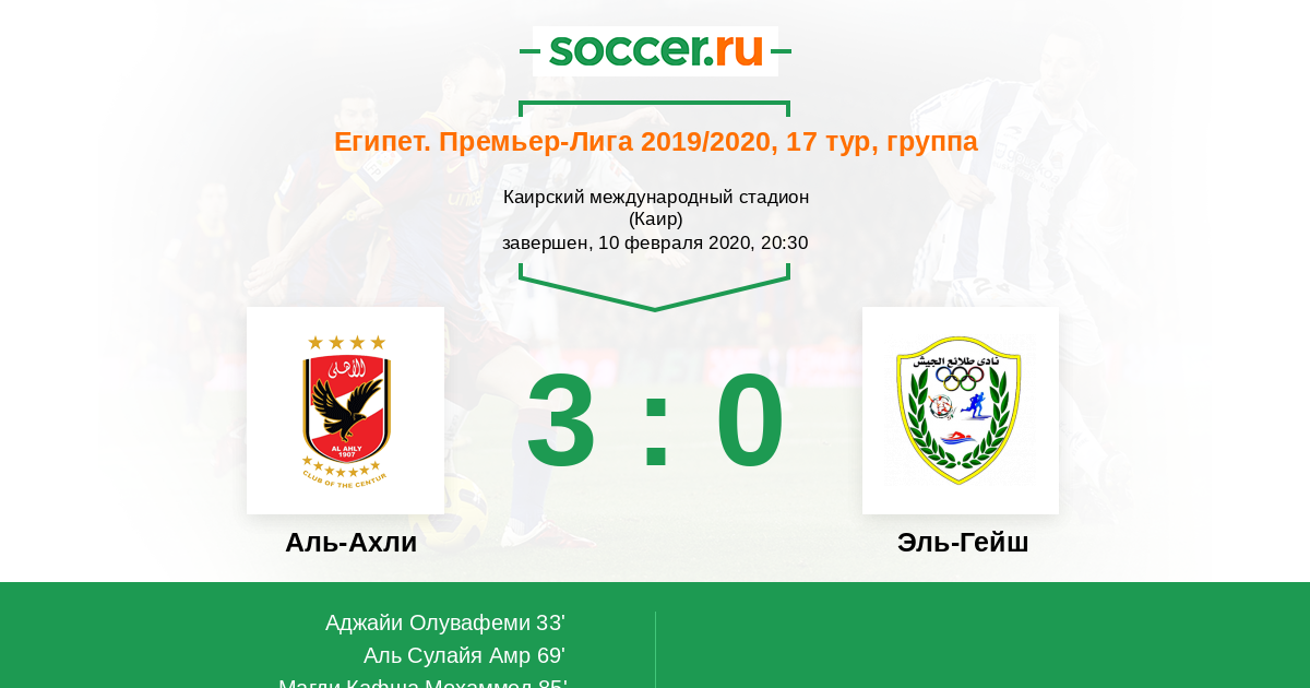 Египет. Премьер-Лига 31.10.2020 Эль-Гейш Логотип футбольный клуб Эль-Гейш (Каир) 0:3 Логотип футбольный клуб Аль-Ахли (Каир) Аль-Ахли