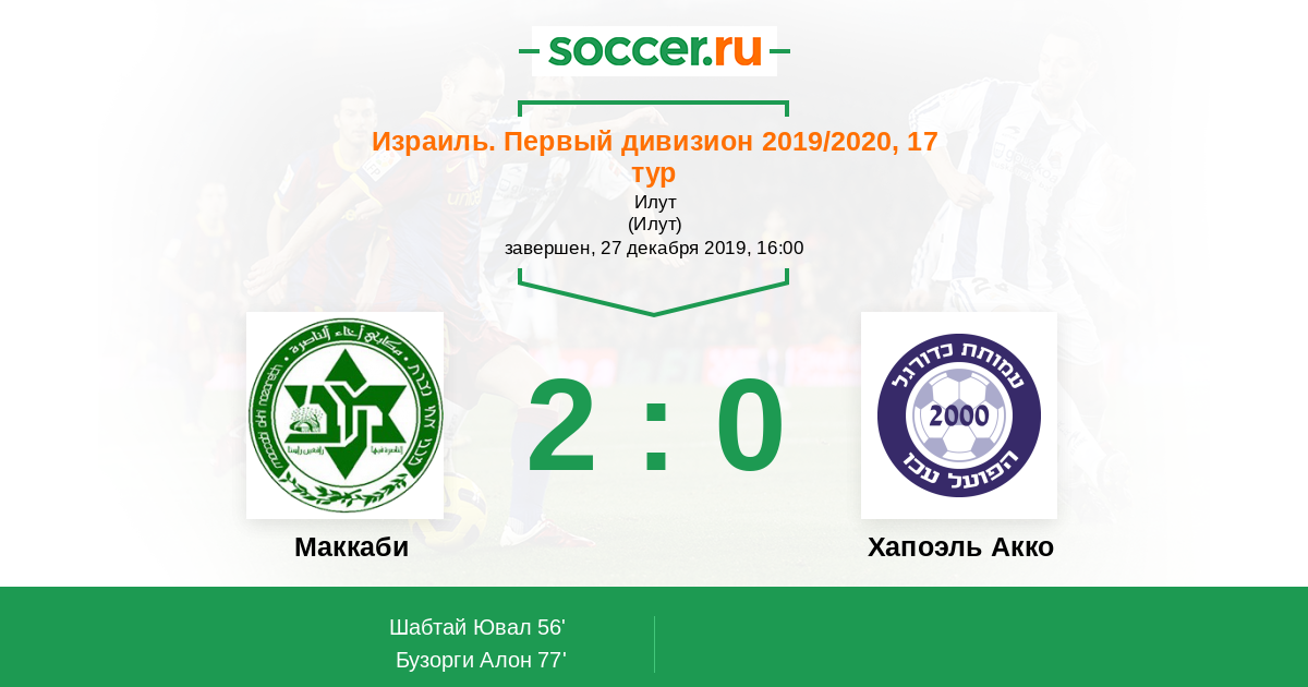 Израиль. Первый дивизион 11.12.2020 Хапоэль Акко Логотип футбольный клуб Хапоэль Акко 1:0 Логотип футбольный клуб Маккаби (Ахи Назарет) Маккаби