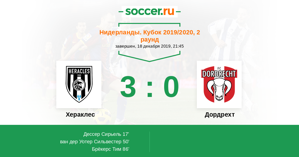 Нидерланды. Эредивизи 12.12.2014 Хераклес Логотип футбольный клуб Хераклес (Алмело) 1:1 Логотип футбольный клуб Дордрехт Дордрехт