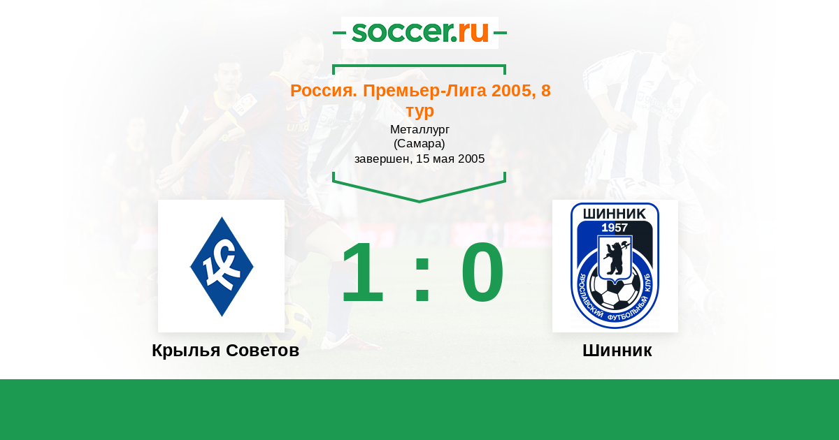 Россия. Премьер-Лига 14.05.2005 Крылья Советов Логотип футбольный клуб Крылья Советов (Самара) 1:0 Логотип футбольный клуб Шинник (Ярославль) Шинник