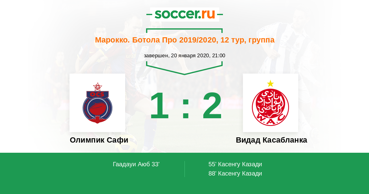 Марокко. Ботола Про 30.09.2020 Видад Касабланка Логотип футбольный клуб Видад Касабланка 4:1 Логотип футбольный клуб Олимпик Сафи Олимпик Сафи