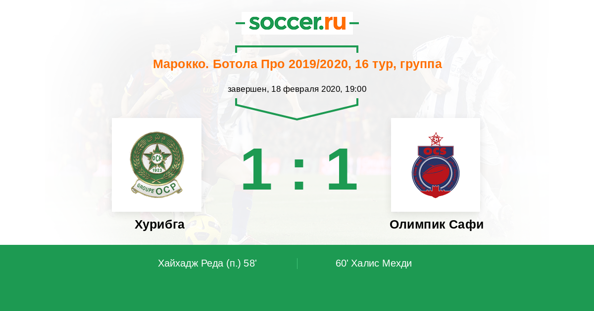 Марокко. Ботола Про 14.09.2019 Олимпик Сафи Логотип футбольный клуб Олимпик Сафи 1:1 Логотип футбольный клуб Хурибга Хурибга