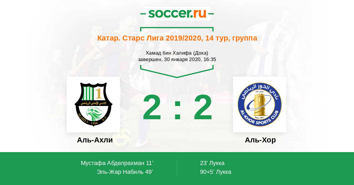 Катар. Старс Лига 12.09.2014 Аль-Ахли Логотип футбольный клуб Аль-Ахли (Доха) 1:1 Логотип футбольный клуб Аль-Хор Аль-Хор
