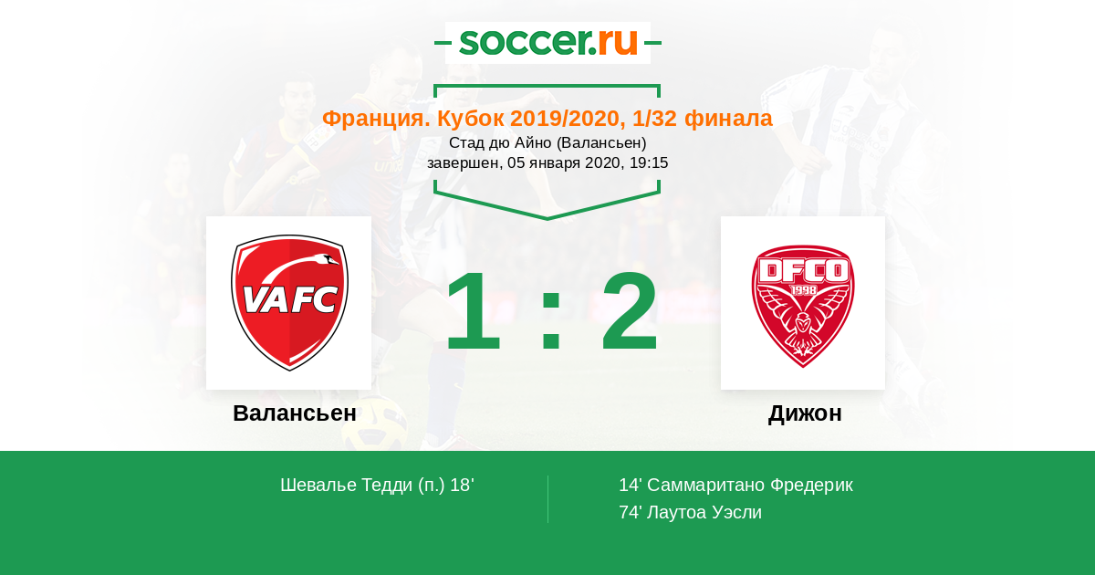 Франция. Лига 1 04.02.2012 Дижон Логотип футбольный клуб Дижон 1:2 Логотип футбольный клуб Валансьен Валансьен